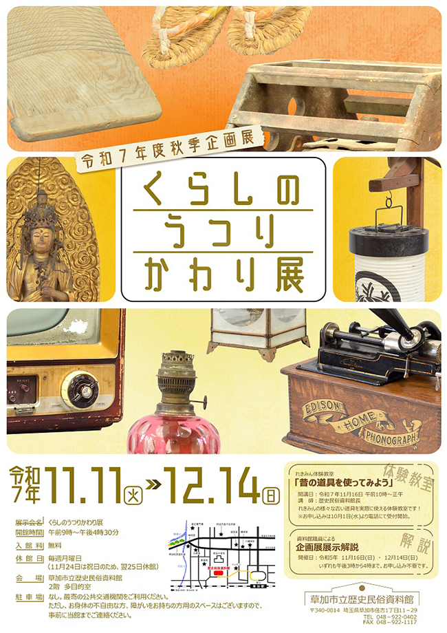 秋季企画展「くらしのうつりかわり展」 会期:令和7年11月11日(火)~12月14日(日) |
