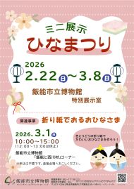 ミニ展示「ひなまつり」 会期:令和8年2月22日(日)~3月8日(日) 新収蔵品展 会期:令和8年3月22日(日)~5月10日(日) |