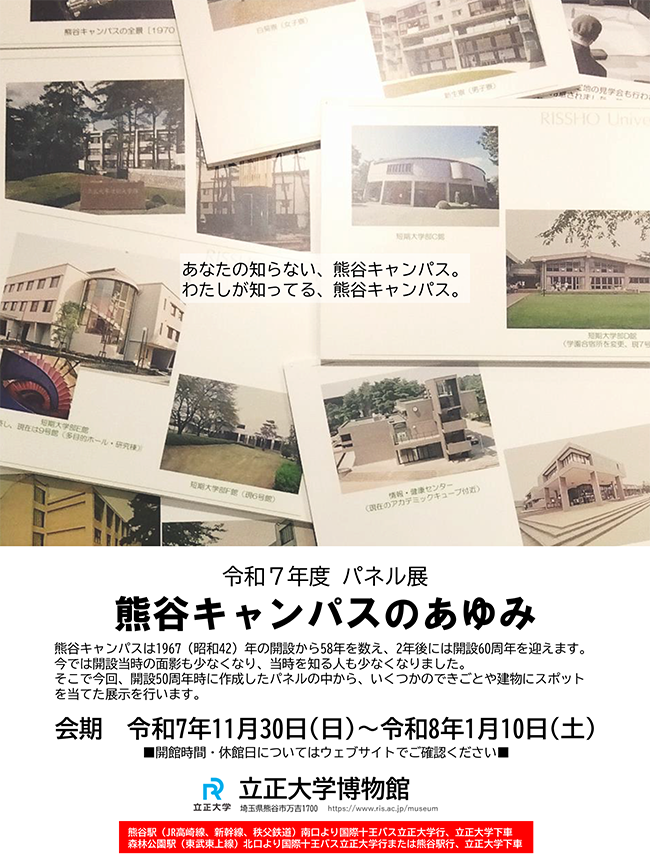パネル展「熊谷キャンパスのあゆみ」 会期:令和7年11月30日(日)~ 令和8年1月10日(土) |