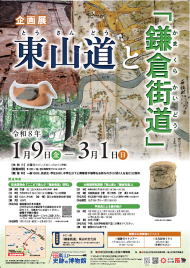 常設展示 中世の考古資料などから鎌倉時代の武蔵武士 畠山重忠や戦国時代の城館跡を紹介します。 企画展「東山道と「鎌倉街道」」 会期:令和8年1月9日(金)~3月1日(日) 令和8年3月2日(月)~6日(金) 常設展準備のため臨時休館 令和8年3月7日(土)~ 常設展示、比企市町村連携展、ロビー展「鎌倉街道」周辺の文化財2 |